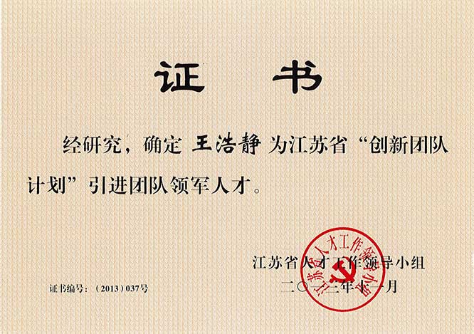 江蘇省引進(jìn)團(tuán)隊(duì)領(lǐng)軍人才