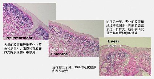 化促進(jìn)創(chuàng)傷愈合的級(jí)聯(lián),導(dǎo)致膠元的新生和日光性彈性組織變性的減輕。