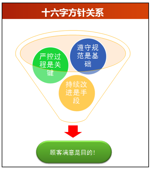 以顧客為中心,滿(mǎn)足顧客的需求和期望是我們組織賴(lài)以生存和發(fā)展的基礎(chǔ),也是我們的奮斗目標(biāo),每個(gè)過(guò)程、每個(gè)部門(mén)都應(yīng)聚焦于滿(mǎn)足顧客需求,為公司的持續(xù)發(fā)展打下良好基礎(chǔ)。顧客不僅包含外部顧客,還包含內(nèi)部顧客,在公司內(nèi)部下道工序是上道工序的顧客,每個(gè)人都應(yīng)樹(shù)立“顧客”意識(shí),心懷敬畏之心,致力于滿(mǎn)足用戶(hù)的需求,響應(yīng)用戶(hù)的需要,主動(dòng)承擔(dān),對(duì)結(jié)果負(fù)責(zé),讓“客戶(hù)”滿(mǎn)意、放心。