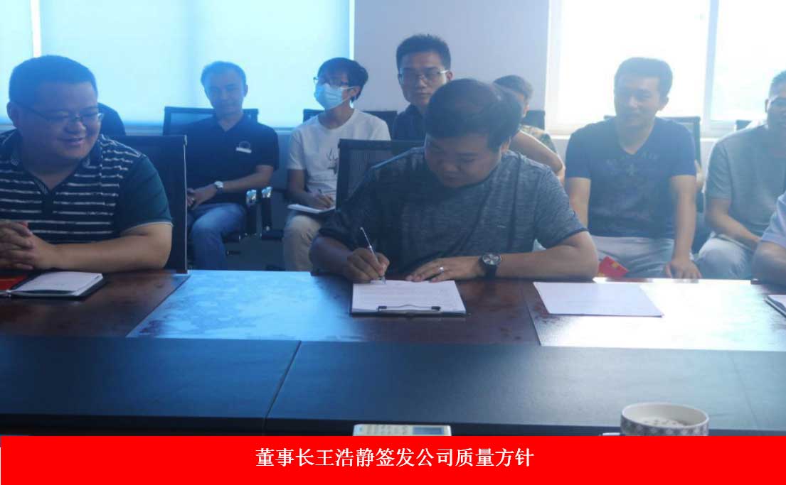 在舒緩的音樂(lè)聲中,公司董事長(zhǎng)兼總經(jīng)理王浩靜簽署和批準(zhǔn)了公司的質(zhì)量方針,標(biāo)志著質(zhì)量方針正式發(fā)布和實(shí)施,意味著西安航科吹響了質(zhì)量管理的號(hào)角,公司的質(zhì)量管理邁入了新時(shí)代。在副總經(jīng)理兼管理者代表?xiàng)罾h帶領(lǐng)全體員工向董事長(zhǎng)兼總經(jīng)理王浩靜承諾:“我承諾,在日常工作中,我將堅(jiān)持踐行、貫徹和落實(shí)公司的質(zhì)量方針,讓領(lǐng)導(dǎo)放心,讓客戶(hù)滿(mǎn)意!”,在鏗鏘有力的音樂(lè)聲中,全體員工在宣誓板簽下了自己的承諾,表示在日常工作中將嚴(yán)格遵守公司的質(zhì)量方針,為公司質(zhì)量發(fā)展貢獻(xiàn)自己的一份力量。