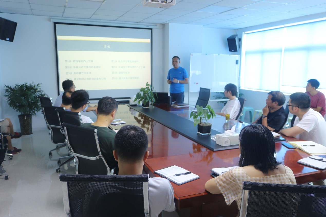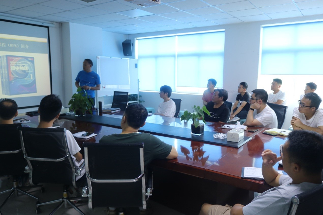 基礎(chǔ)知識是創(chuàng)新的根基和源泉。在邀請多位科研院所、高校的教授、博導(dǎo)蒞臨講學(xué)后,為進(jìn)一步夯實(shí)研發(fā)團(tuán)隊(duì)基礎(chǔ)能力,8月4日至7日,公司特地邀請了浙江省紹興市鑒湖中學(xué)物理特級教師兼浙江師范大學(xué)物理學(xué)科教育研究生導(dǎo)師陳敏華博士,依托德國卡爾斯魯厄大學(xué)物理教材(該教材充分體現(xiàn)了德國物理教學(xué)的嚴(yán)謹(jǐn)性和系統(tǒng)性,對物理概念的外延、內(nèi)涵有深刻的闡述,對物理學(xué)專業(yè)學(xué)習(xí)會產(chǎn)生不可估量的深遠(yuǎn)影響,下文對該教材簡稱KPK),利用三天時(shí)間,系統(tǒng)梳理了力、熱、電、磁、波動(dòng)及原子和原子核物理的基礎(chǔ)。