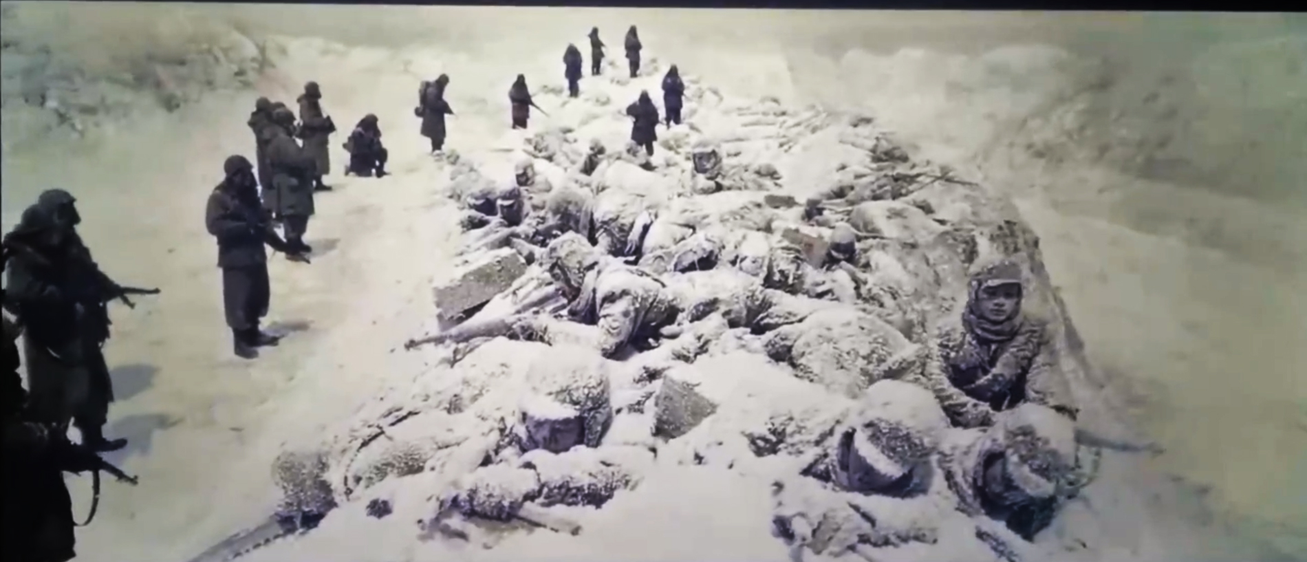 面對(duì)武器和其他裝備優(yōu)良的美國軍隊(duì),中國人民志愿軍戰(zhàn)士體現(xiàn)了服從命令視死如歸、凍成冰雕也不退縮的革命精神。面對(duì)“冰雕連”的烈士們,美國人由衷的向他們行了個(gè)軍禮。