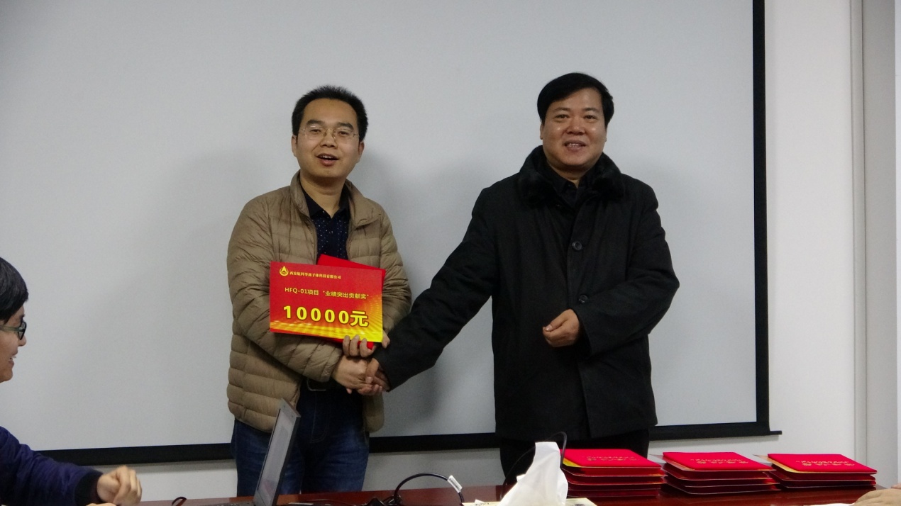 緊接著公司總經(jīng)理靳有林、副總經(jīng)理陳紅明、總工程師馬俊分別為項目組其他受到表彰的成員頒發(fā)榮譽證書及獎金,并合影留念。