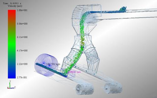 曲線溜槽技術(shù)基于DEM離散元方法,采用三維軟件設(shè)計和立體建模技術(shù),借助于先進的顆粒學仿真軟件,對散狀物...