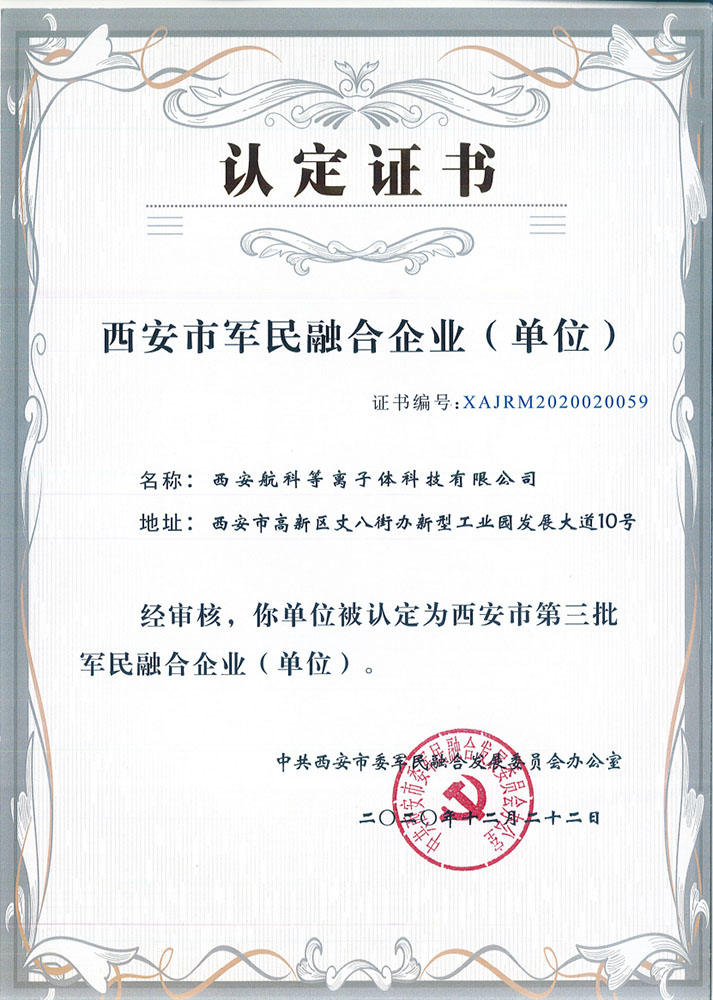 西安市軍民融合證書