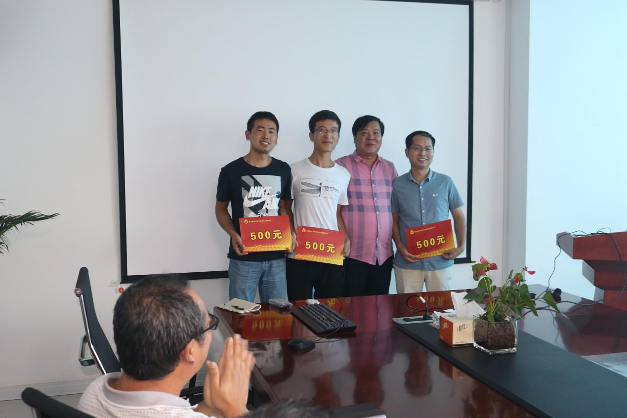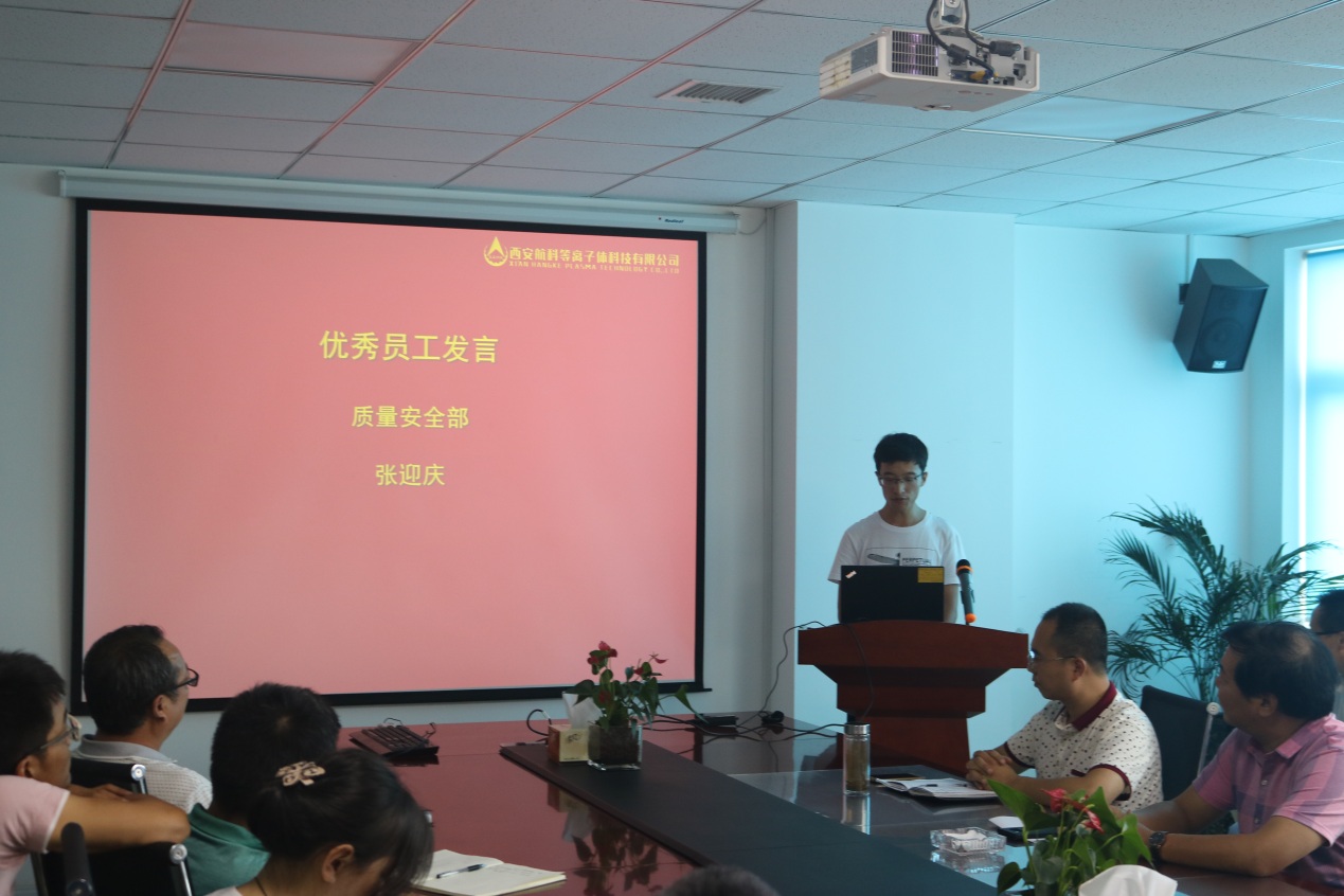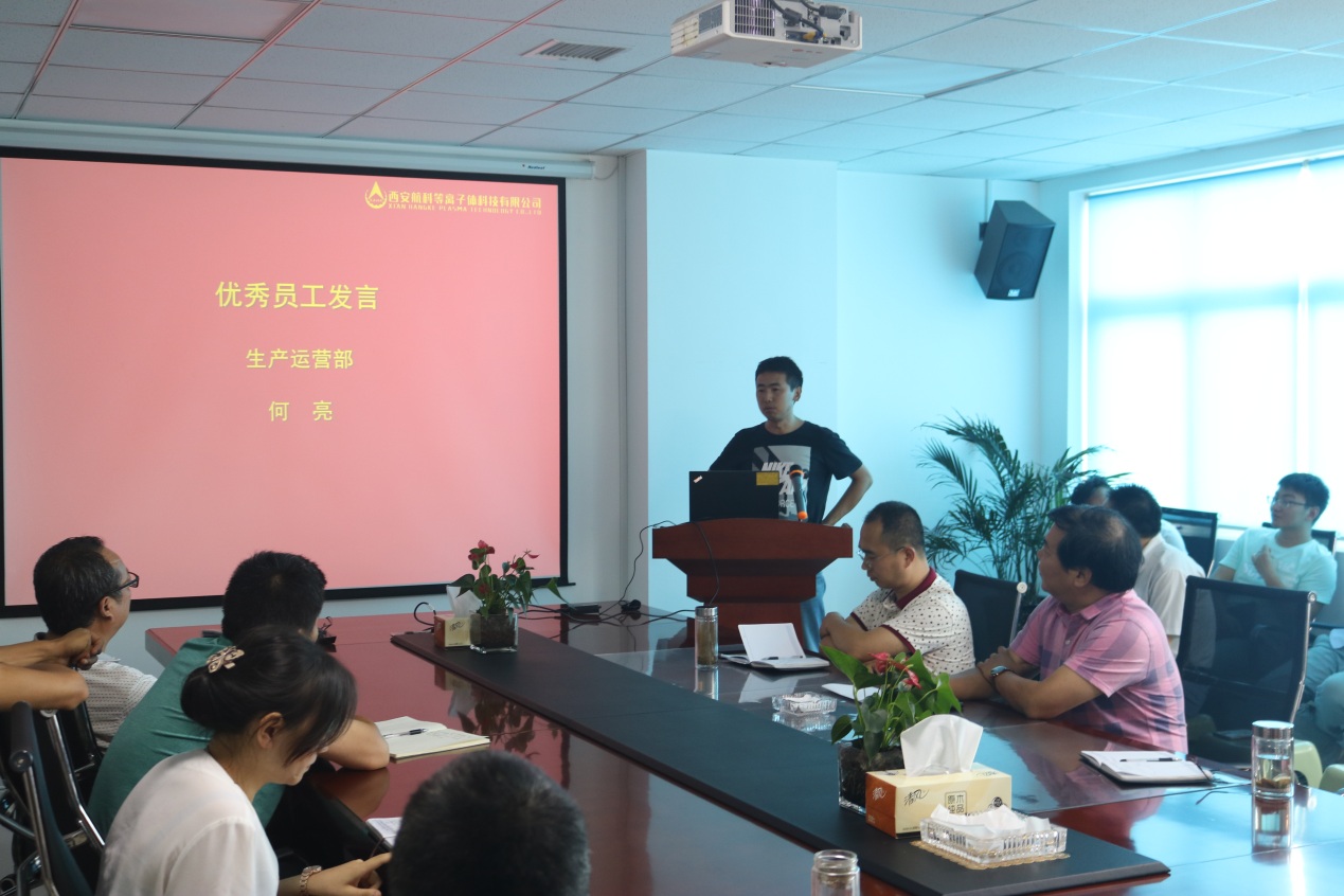 會(huì)上,對評選出的2018年上半年3名優(yōu)秀員工進(jìn)行表彰,對他們樂于奉獻(xiàn)、主動(dòng)工作的精神予以嘉獎(jiǎng),肯定成績,分享喜悅的同時(shí)更要總結(jié)經(jīng)驗(yàn),鼓足干勁,為公司更快更好發(fā)展儲(chǔ)備能量。研發(fā)部張忠虎、質(zhì)量安全部張迎慶、生產(chǎn)運(yùn)營部何亮分別從專業(yè)、感恩、學(xué)習(xí)三方面進(jìn)行發(fā)言,匯報(bào)過去的上半年,感悟自己和企業(yè)同步成長,工作中取得的收獲;全體員工應(yīng)以他們?yōu)榘駱樱ぷ鞅M職盡責(zé)、不畏困難、勇挑重?fù)?dān)。
