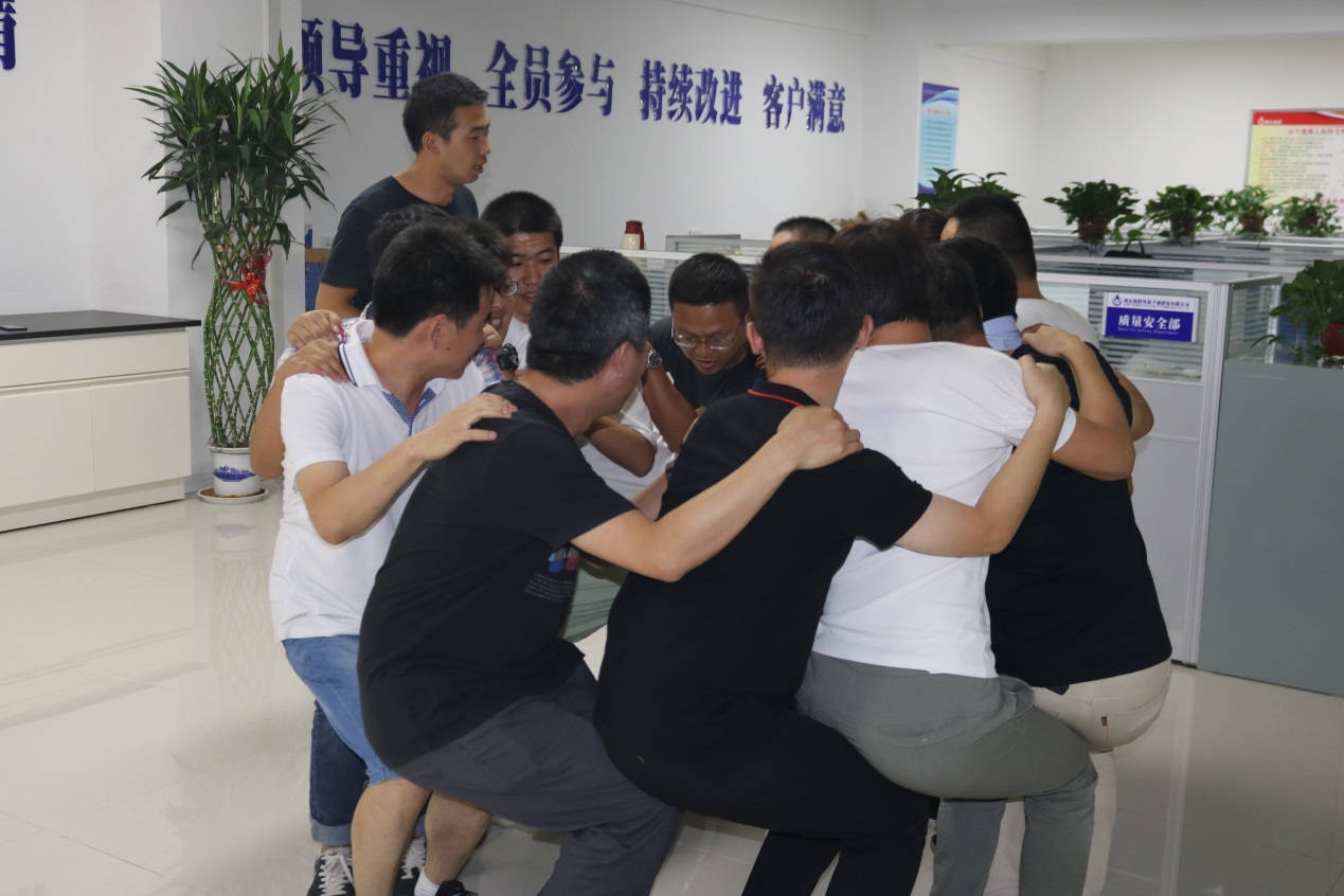 會(huì)議結(jié)束后,由綜合管理部郭榮組織全體員工開展了名為“人椅”的團(tuán)隊(duì)建設(shè)活動(dòng)。分別以奇數(shù)和偶數(shù)組成兩個(gè)比賽組,最后看哪個(gè)組堅(jiān)持的時(shí)間更長則獲勝,并發(fā)有小禮物作為鼓勵(lì)?;顒?dòng)期間,大家都你爭我搶的談?wù)撟约旱挠^點(diǎn),也在不斷的嘗試,可慢慢的這種聲音少了,更多的是練習(xí),總結(jié)經(jīng)驗(yàn),學(xué)習(xí)別的戰(zhàn)隊(duì)的方式,女同志也積極響應(yīng)游戲規(guī)則,在這里,沒有男女,沒有上下級(jí),只有戰(zhàn)友,只有兄弟!